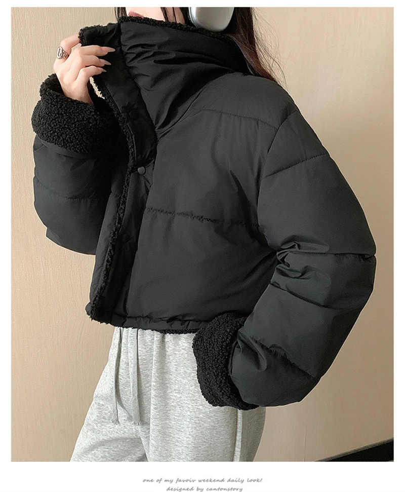 Stay warm, chic, and versatile this season with our Women’s Thick Warm Plus Velvet Down Cotton Jacket. Designed with a two-side wear feature, this short parka-style coat offers double the fashion choices in one jacket. With its lapel collar, quilted button-up design, and soft cotton padding, this piece combines comfort, functionality, and modern style — perfect for autumn and winter wear.