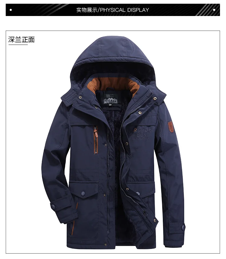 inter Men's Clothing Cotton-padded Jackets Fleece Lining Thickened Loose Casual Parkas Multi-pocket Cold-resistant Warm Jackets