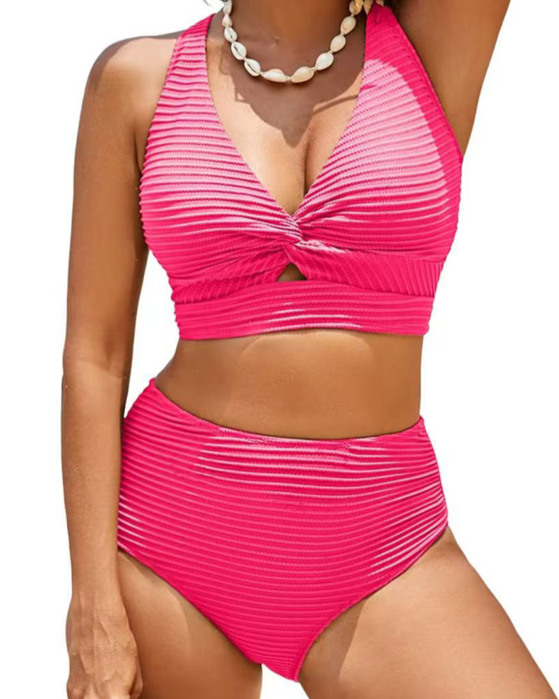 This stunning swimsuit features a twist-front design that adds a fashionable flair to your beach look. The high waist style elongates your legs and accentuates your curves, ensuring you feel both charming and confident.