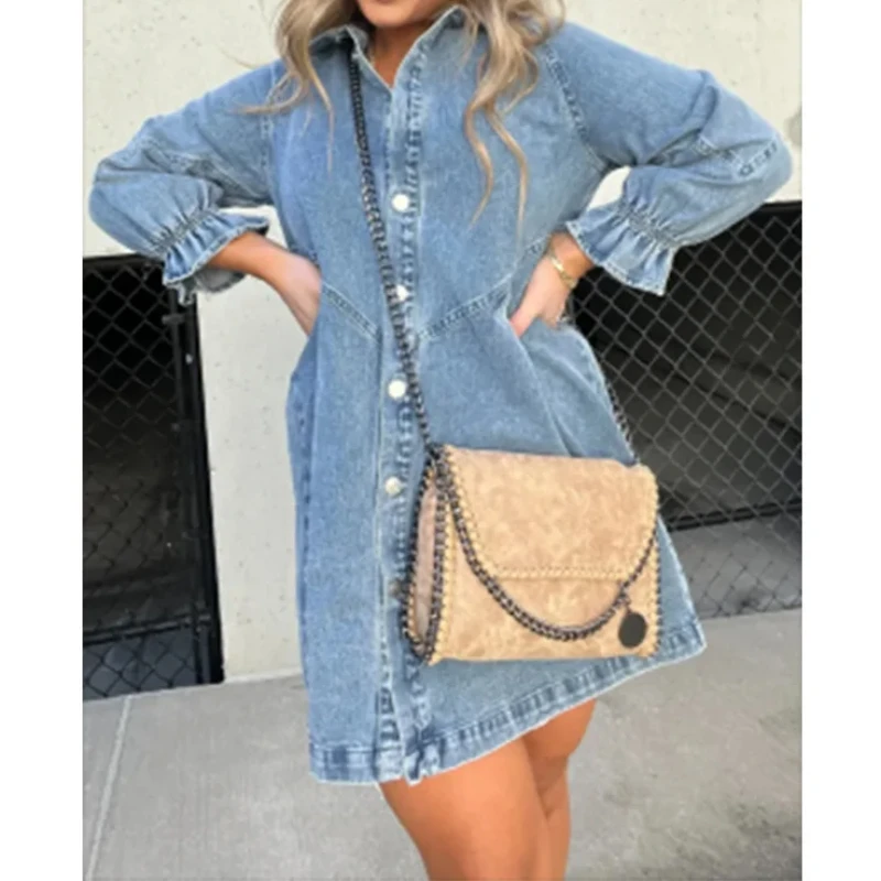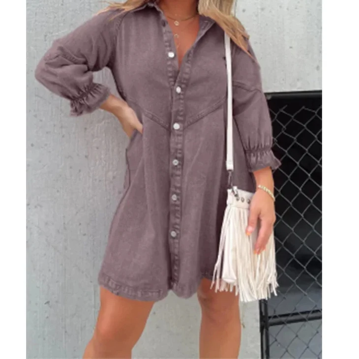 Step into effortless style with our 2024 new denim shirt dress, designed for women who love a balance of casual comfort and chic fashion. Featuring a turn-down collar and single-breasted front, this dress brings a timeless denim vibe with a modern twist. The lantern sleeves add volume and elegance, while the A-line silhouette ensures a flattering fit for all body types.