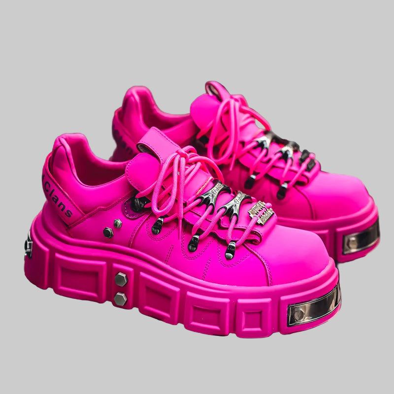 Stand out with these Trendy Pink Platform Sneakers, combining bold metal punk aesthetics with modern streetwear comfort. Designed for those who love to express their individuality, these shoes deliver both fashion impact and functional performance.