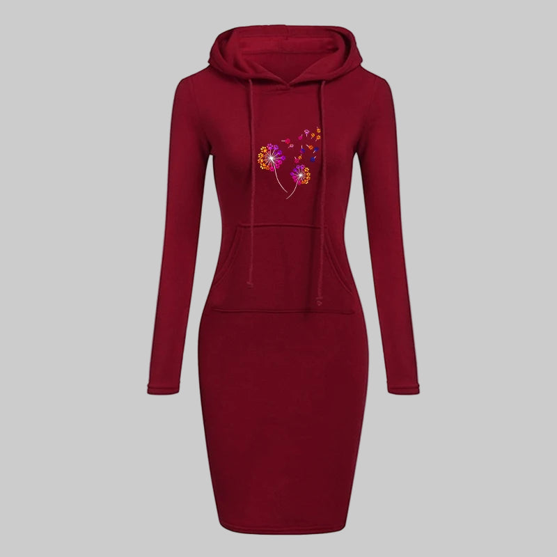 New Midi Casual Pocket Hooded Dress – Long Sleeve Slim Fit Hoodie Dress