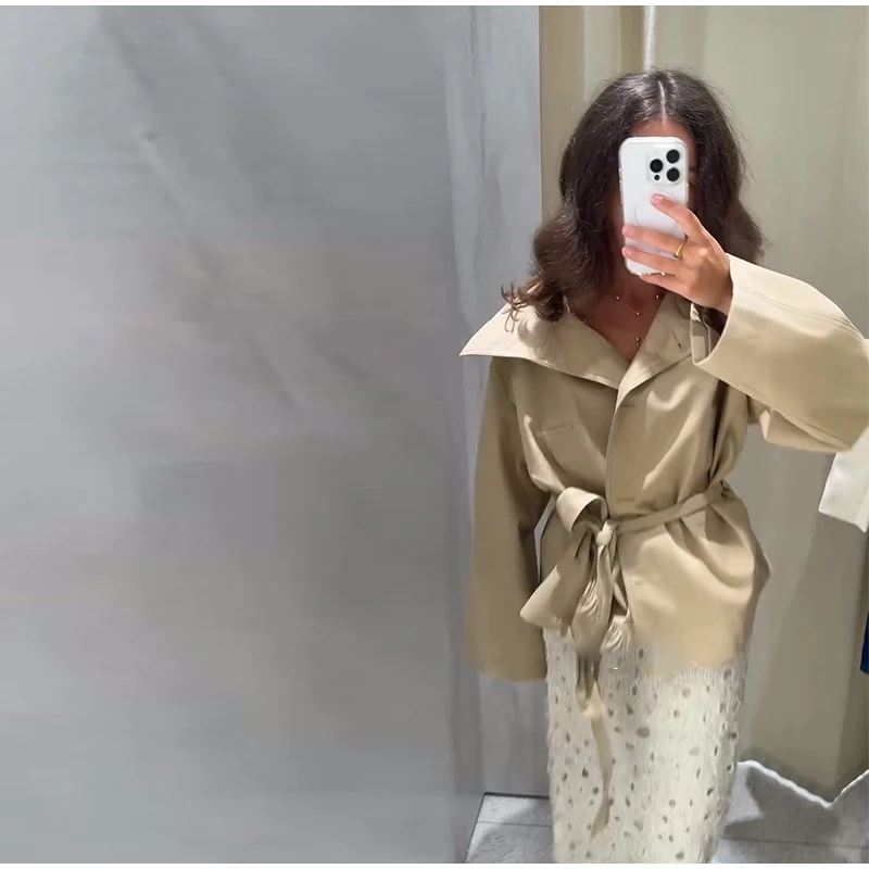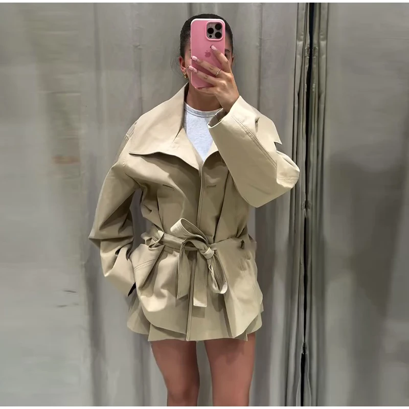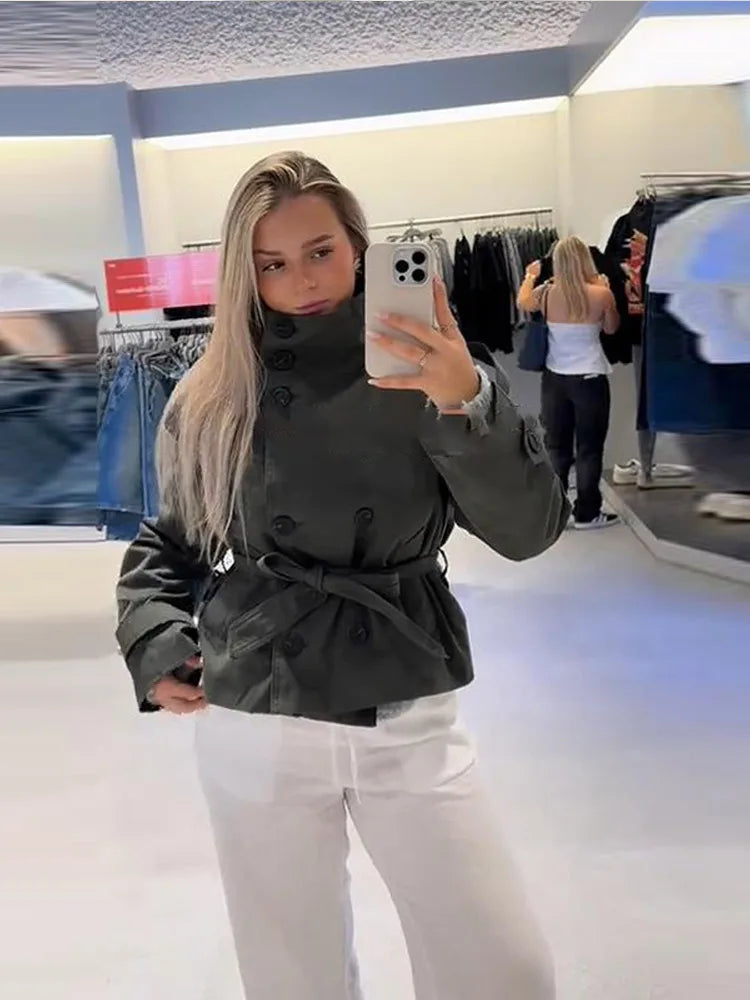 This isn’t just a jacket — it’s a wardrobe essential for the modern woman. The cropped cut adds a contemporary twist to the classic trench coat, while the belted waist ensures a sleek, feminine fit. Pair it with tailored trousers for the office, jeans for casual chic, or skirts for an elegant evening look.