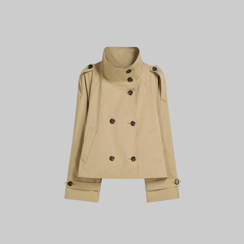 • Double-Breasted Closure – Classic trench-inspired style with a modern cropped cut.