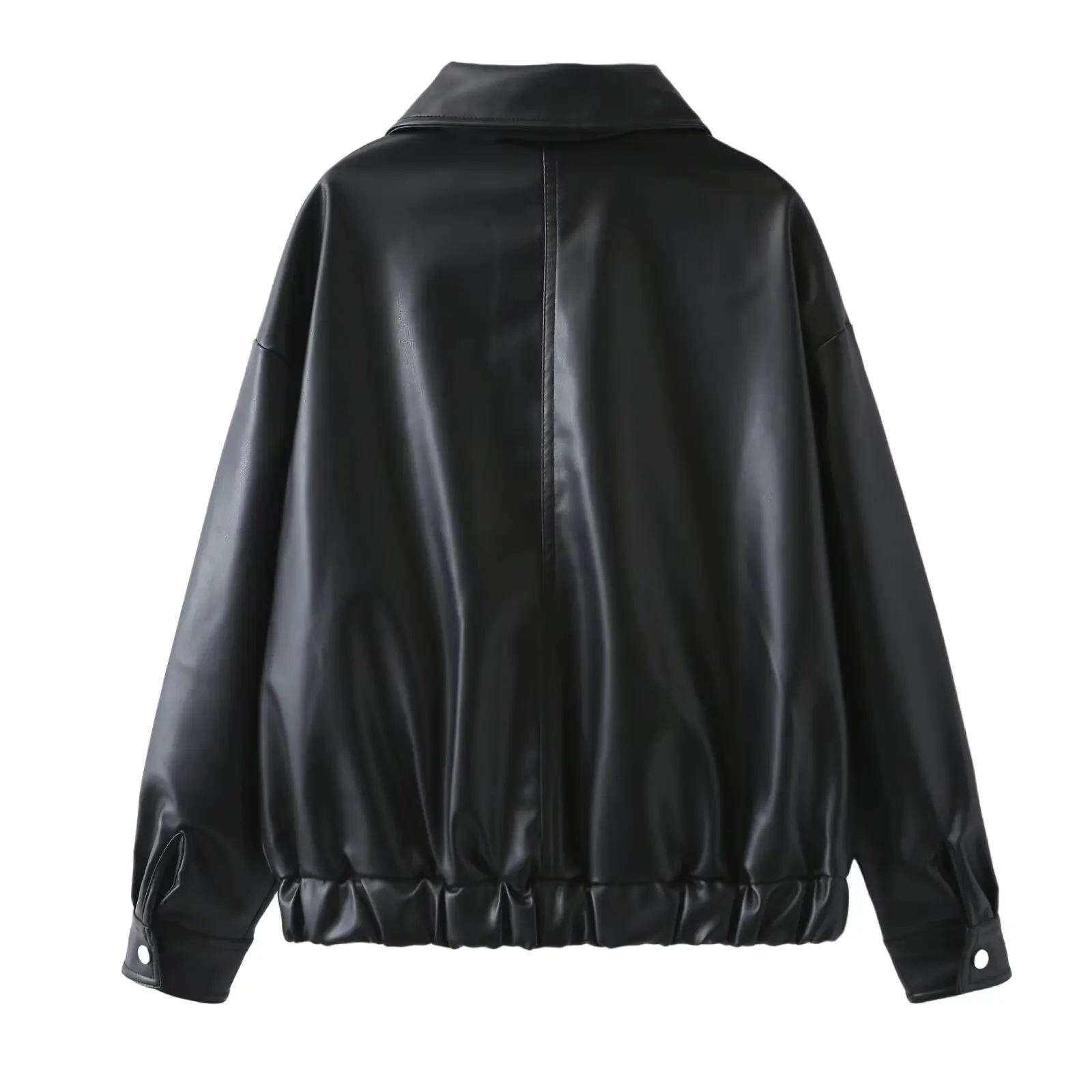 🖤 Women’s Versatile Loose Faux Leather Jacket – Chic, Modern & Effortless