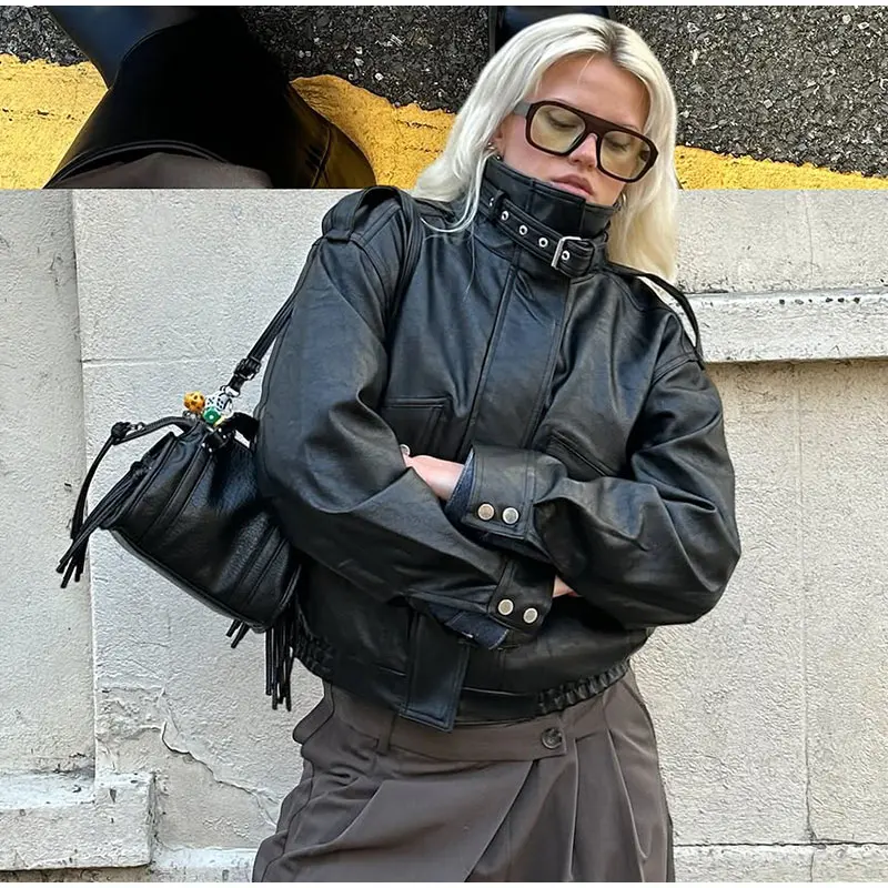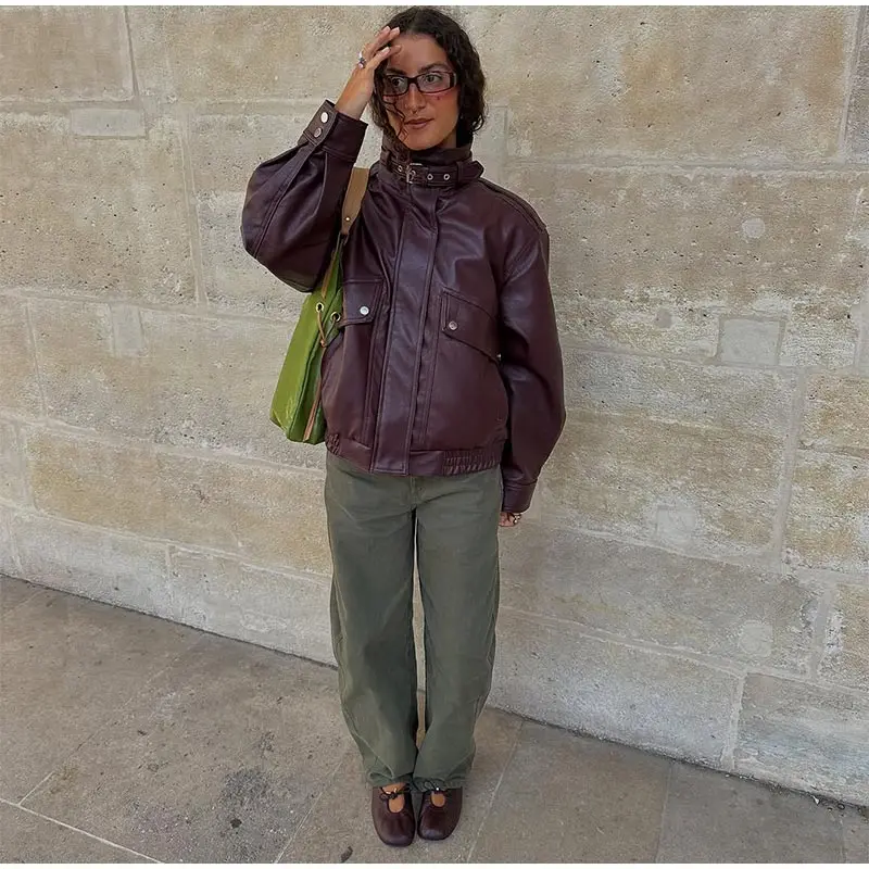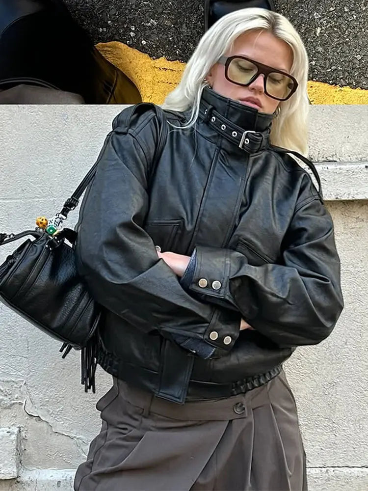 Upgrade your wardrobe this season with our Women’s Fashion Leather Coat, designed for autumn and winter. Featuring a stand collar, elastic hem, long sleeves, and button-zipper closure, this jacket blends high street fashion with practical comfort, making it a versatile piece for any occasion.