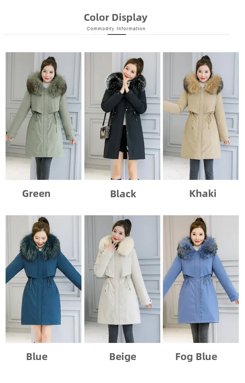 Thickened Fleece Women’s Cotton Jacket – American Style Slim Fit Mid-Length Parka