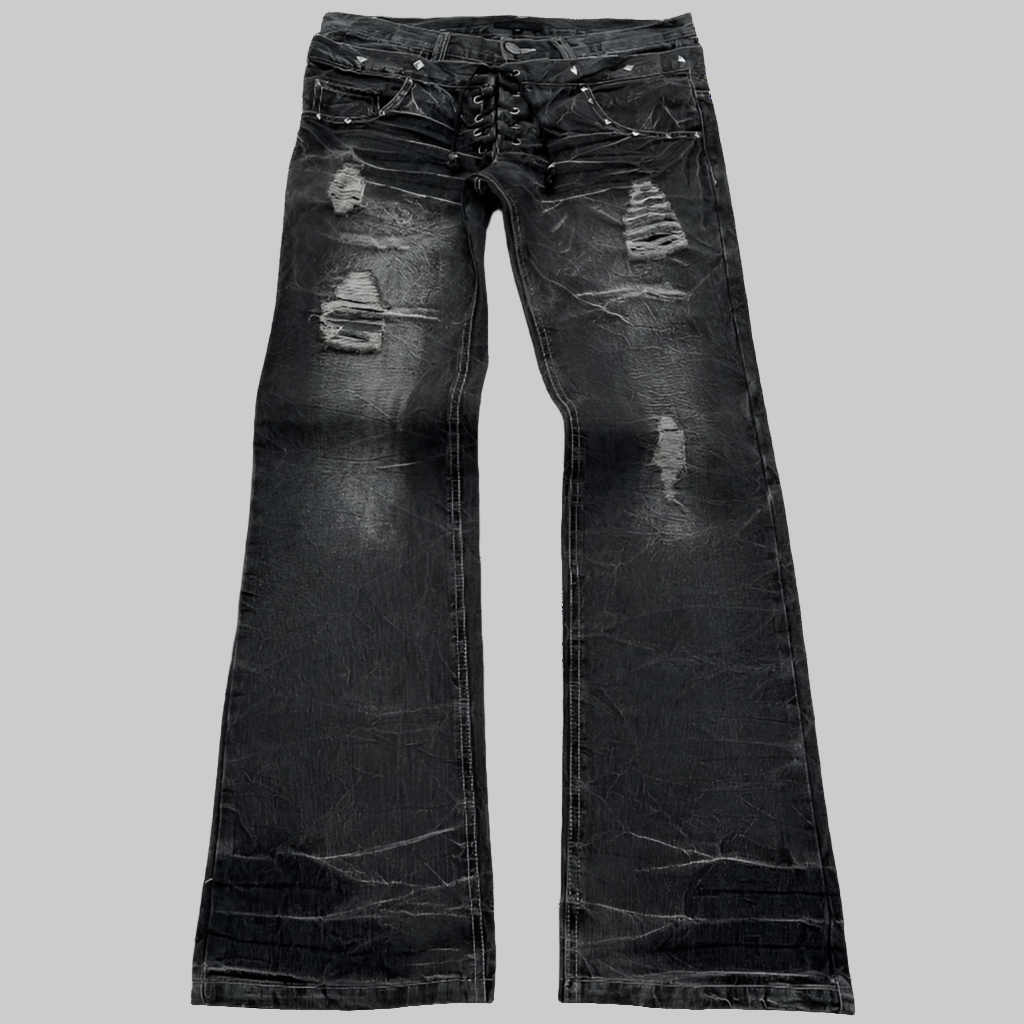 Washed Unisex Gothic Micro Flared Lace-Up Jeans