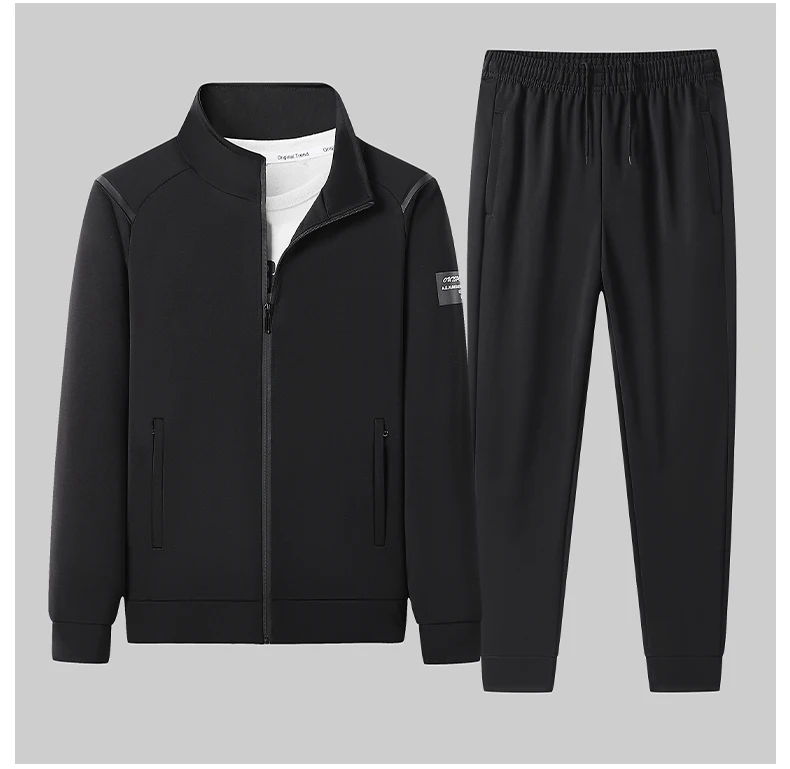 Practical Design: Jacket features stand-up collar, full zipper, and pockets; sweatpants include elastic waistband and cuffs for a snug fit.