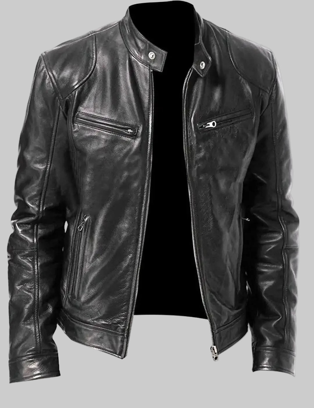 Modern Stand Collar Design 👌 – Adds a bold, masculine edge and completes your biker-inspired style.