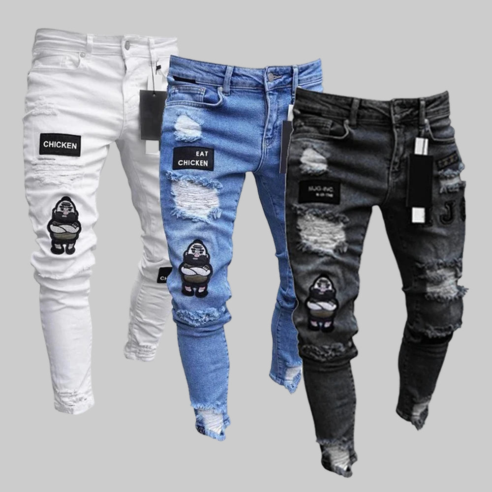 Upgrade your streetwear game with our Embroidery Skinny Ripped Jeans for Men โ a bold mix of style, comfort, and hip hop edge. Designed with precision embroidery, ripped detailing, and a slim silhouette, these jeans are built for men who want to stand out in every crowd.