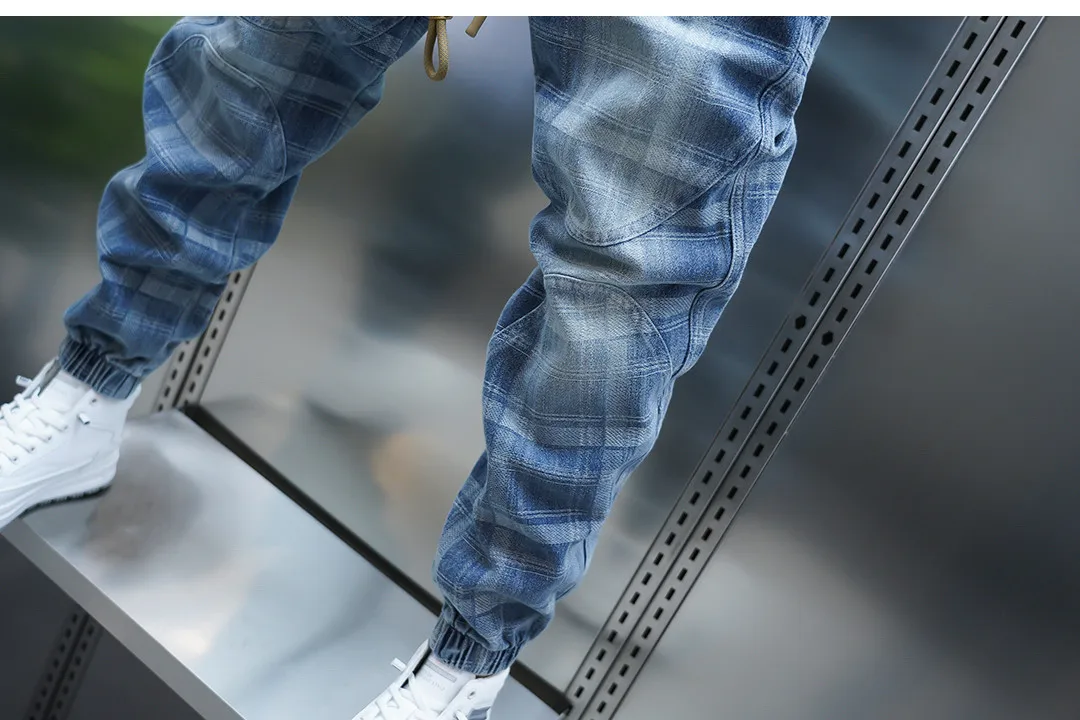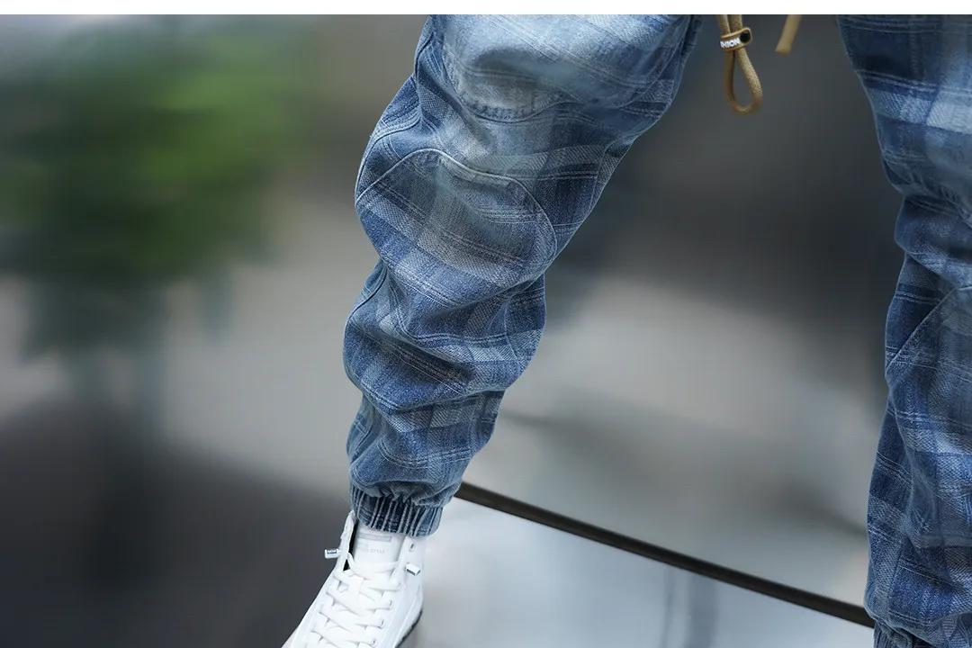 Bring a modern edge to your wardrobe with these Stylish Men’s Light Blue Plaid Patchwork Jogger Pants, designed for the man who values luxury streetwear and standout details. With a slim-fit silhouette, these joggers merge casual comfort with premium design, making them a versatile staple for both relaxed days and stylish nights out.