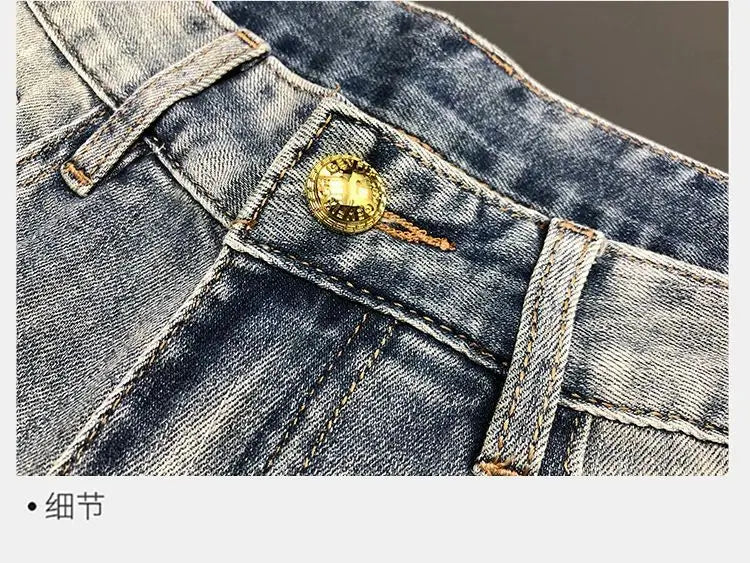 🐯 Y2K Gothic Ripped Straight Leg Cropped Jeans – Retro Punk Streetwear 🔥✨