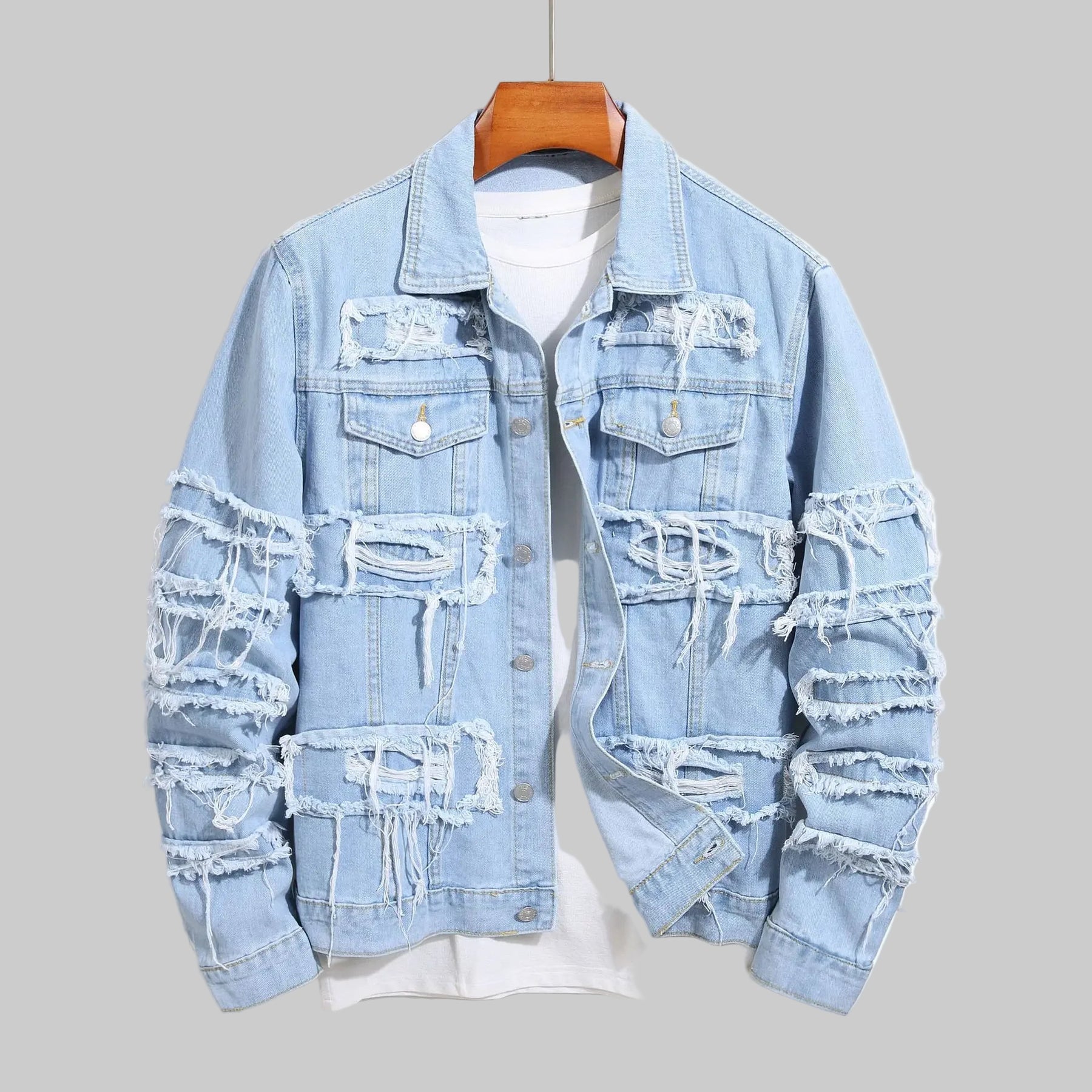 🧥 Men’s Distressed Stacked Denim Jacket – Street Style Edge
