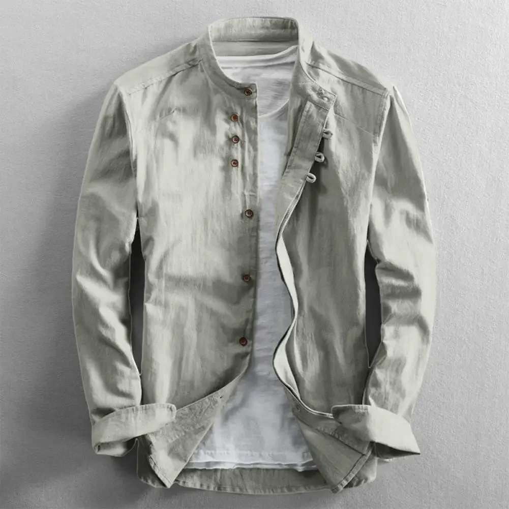 • Men’s Japanese-Inspired Linen Cotton Stand Collar Shirt