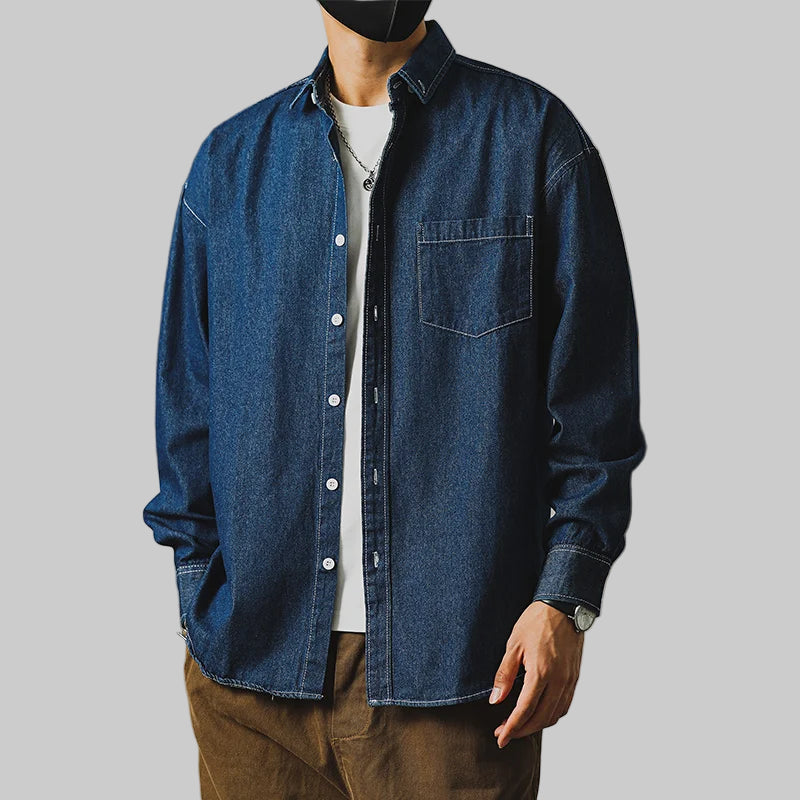 👔 Retro Japanese–Korean Style Men’s Denim Shirt – S to 4XL