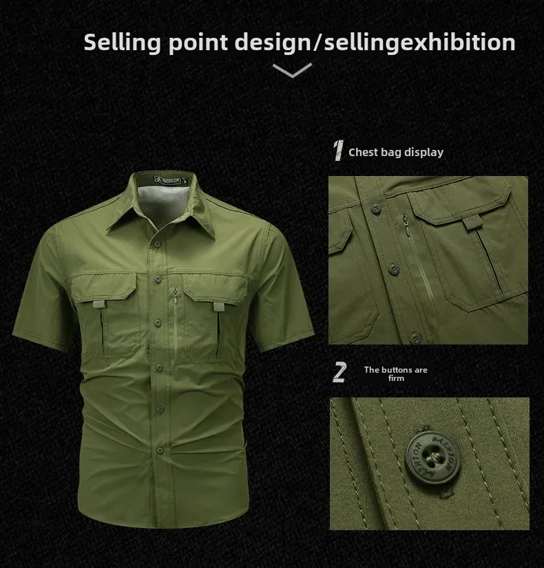 Stay cool and comfortable during your outdoor adventures with our Men’s Ice Silk Short-Sleeve Shirt. Designed for summer workwear, sports, and casual wear, this lightweight shirt combines breathability, quick-dry technology, and modern style.