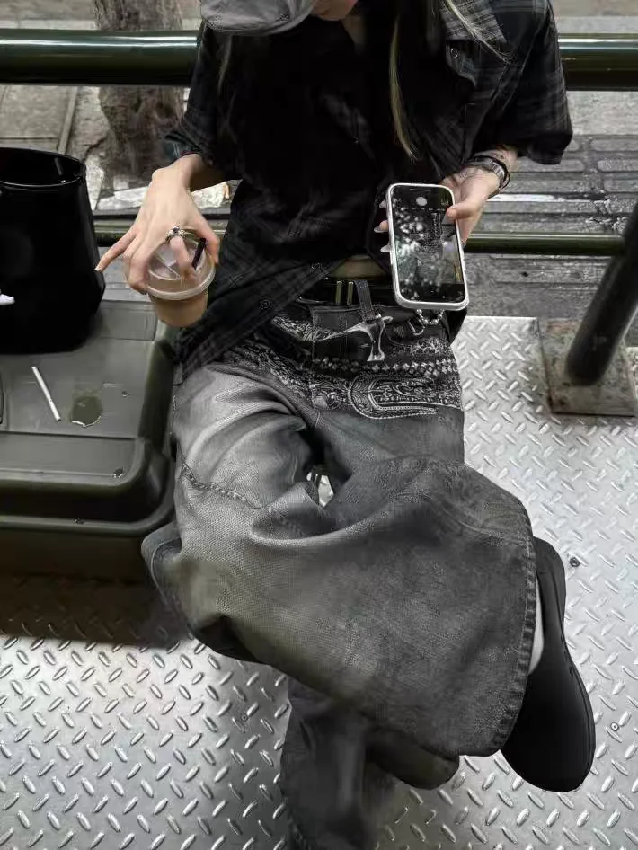 ✨ Not just jeans — they’re wearable street art: baggy, graffiti-dripped, and unapologetically Y2K.
