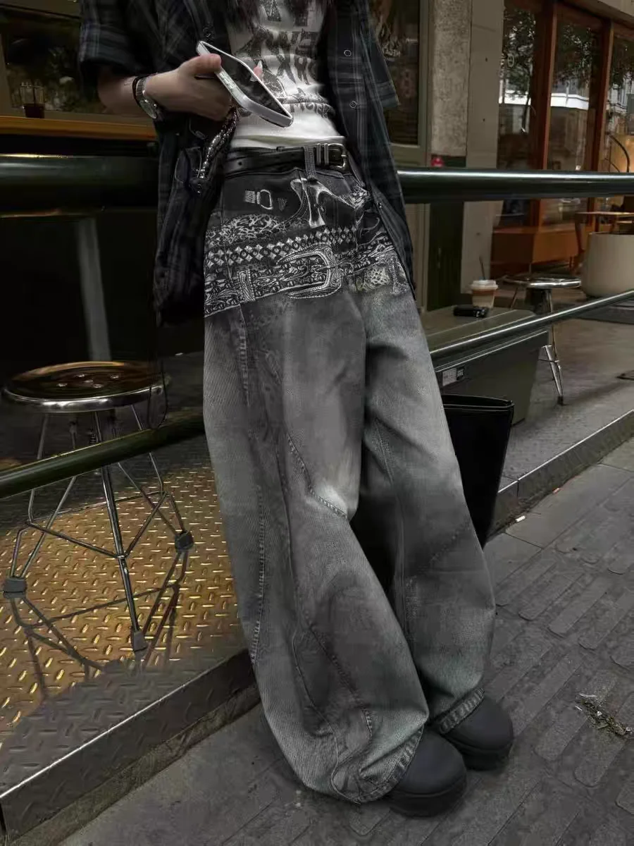 The oversized silhouette delivers that relaxed baggy vibe, while the vibrant graffiti art transforms your look into a walking canvas of self-expression. Perfect for pairing with crop tops, hoodies, or chunky sneakers, these jeans embody the Japanese streetwear spirit with a Y2K twist.