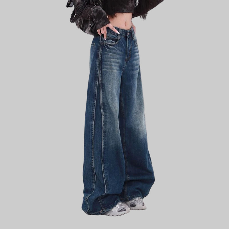 Level up your street style with these Women’s Patchwork Wide-Leg Jeans, designed for the ultimate cool-girl aesthetic. Featuring a high-waist cut and a regular loose fit, these jeans combine comfort with bold, fashion-forward detail. The stonewashed finish adds a vintage vibe, while the patchwork design + button accents make them stand out from basic denim.