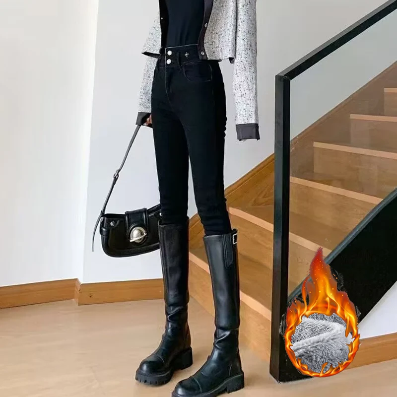 Stay cozy and stylish this winter with these Women’s Plush Thermal Straight-Leg Jeans. Designed with soft fleece lining, thick insulation, and a narrow straight-leg cut, these trousers are perfect for daily wear, snowy outings, or casual winter fashion. Combining comfort, warmth, and modern style, they’re an essential addition to any winter wardrobe. 🌟