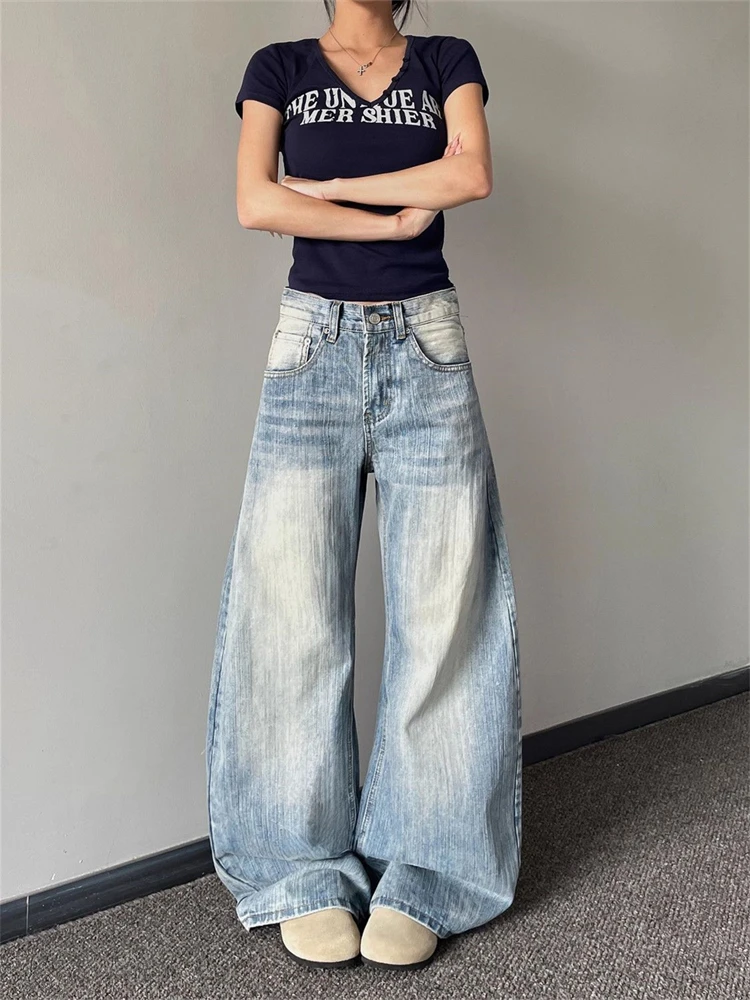 Level up your casual rotation with these Women’s Washed Blue Curved Wide-Leg Jeans, a unisex-inspired denim essential that blends retro street style with everyday comfort. Designed with a straight, loose silhouette and a subtle curved wide-leg shape, these jeans deliver an effortlessly cool-girl vibe while staying versatile enough for any casual look.