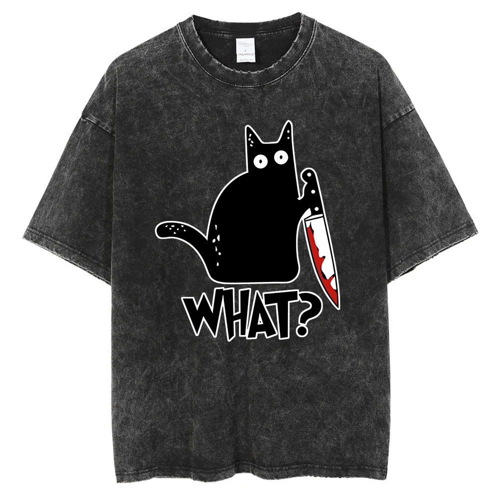 Bring playful energy to your streetwear collection with this Cat Print Acid Washed T-Shirt. Crafted from 100% premium cotton, it offers breathability, softness, and comfort — making it perfect for casual summer wear.