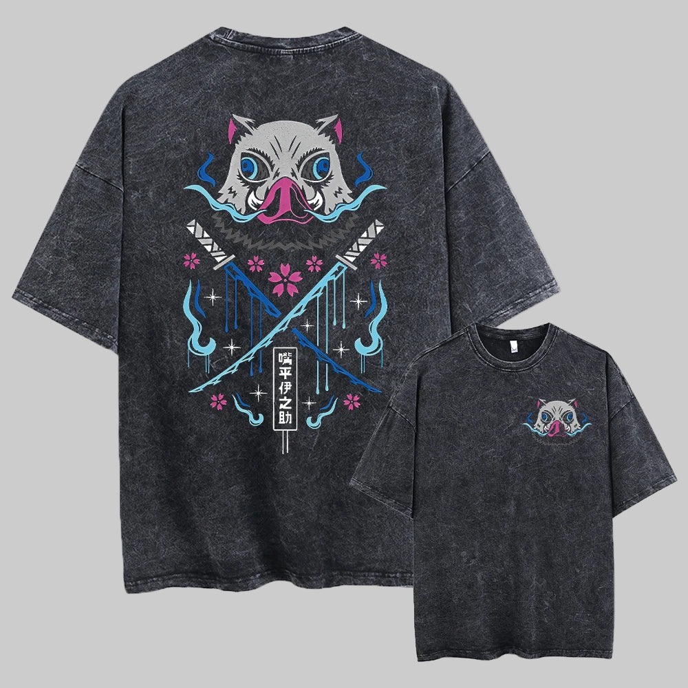 🖤 Oversized Acid Wash Black T-Shirt with Japanese Anime Graphic