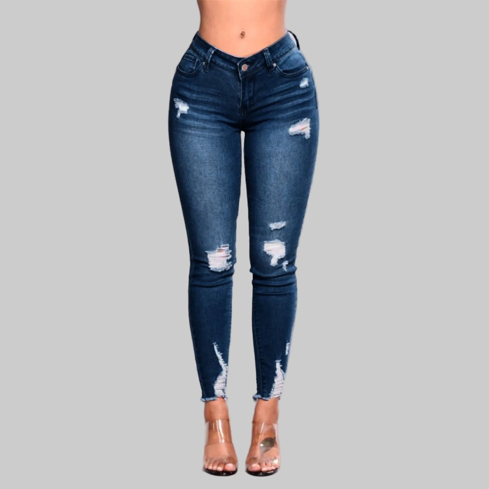 Description: Turn heads with these butt-lifting ripped skinny jeans – designed to sculpt, slim, and flatter your figure. Made from a durable stretch blend of polyester and spandex, they hug your curves while offering all-day comfort. The high-waist cut elongates your legs, while the distressed ripped details add a stylish edge for a bold, trendy look.