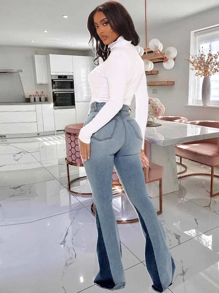 Stand out with confidence in these Women’s High Waist Ripped Flared Jeans, crafted with a washed denim finish, distressed patchwork details, and stretchy comfort fit. Inspired by 2025 American streetwear trends, these jeans perfectly balance retro flare with edgy modern style.