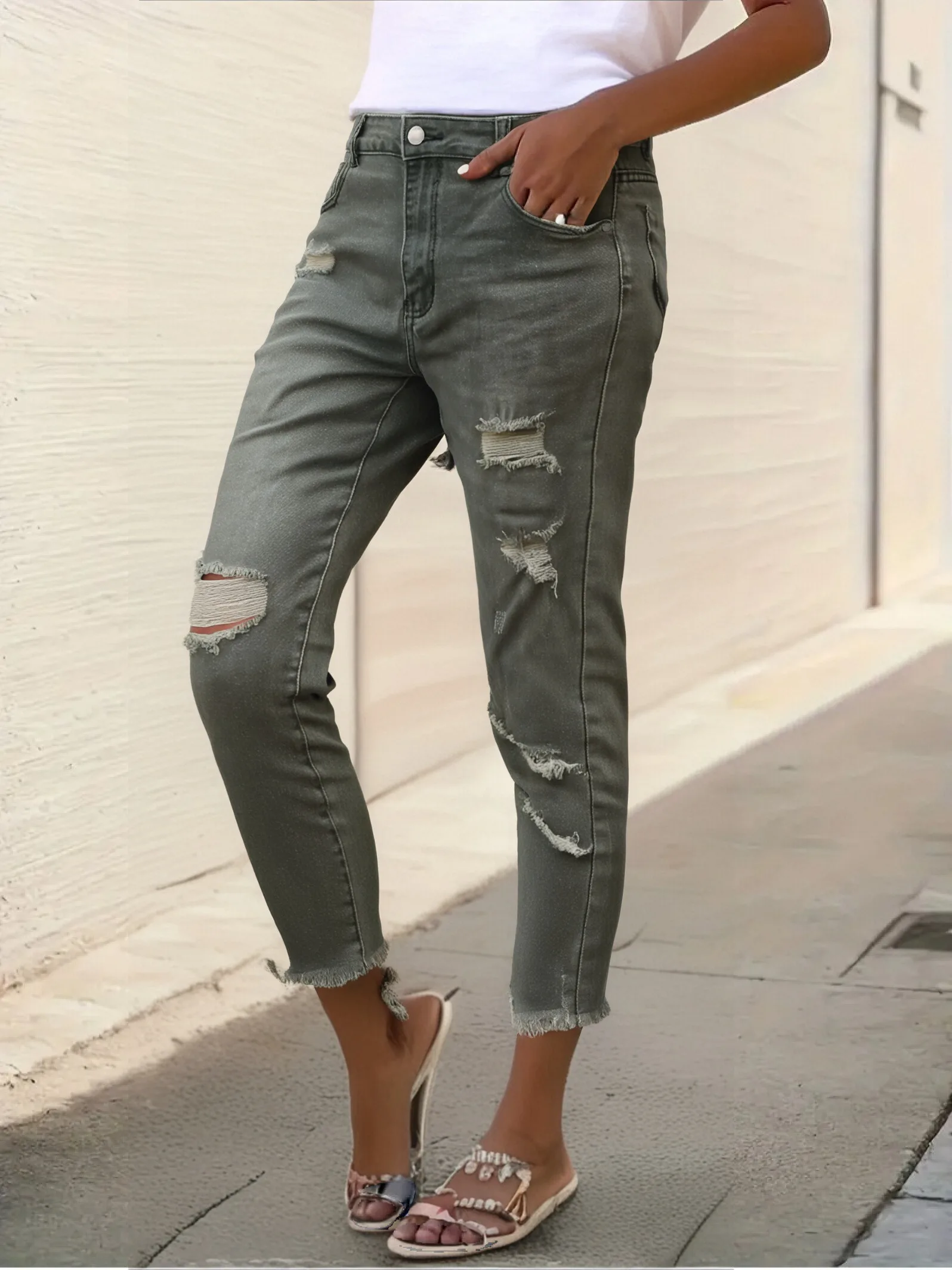 ✨ Not just jeans — your new go-to fit. Relaxed, ripped, and chic in olive green.