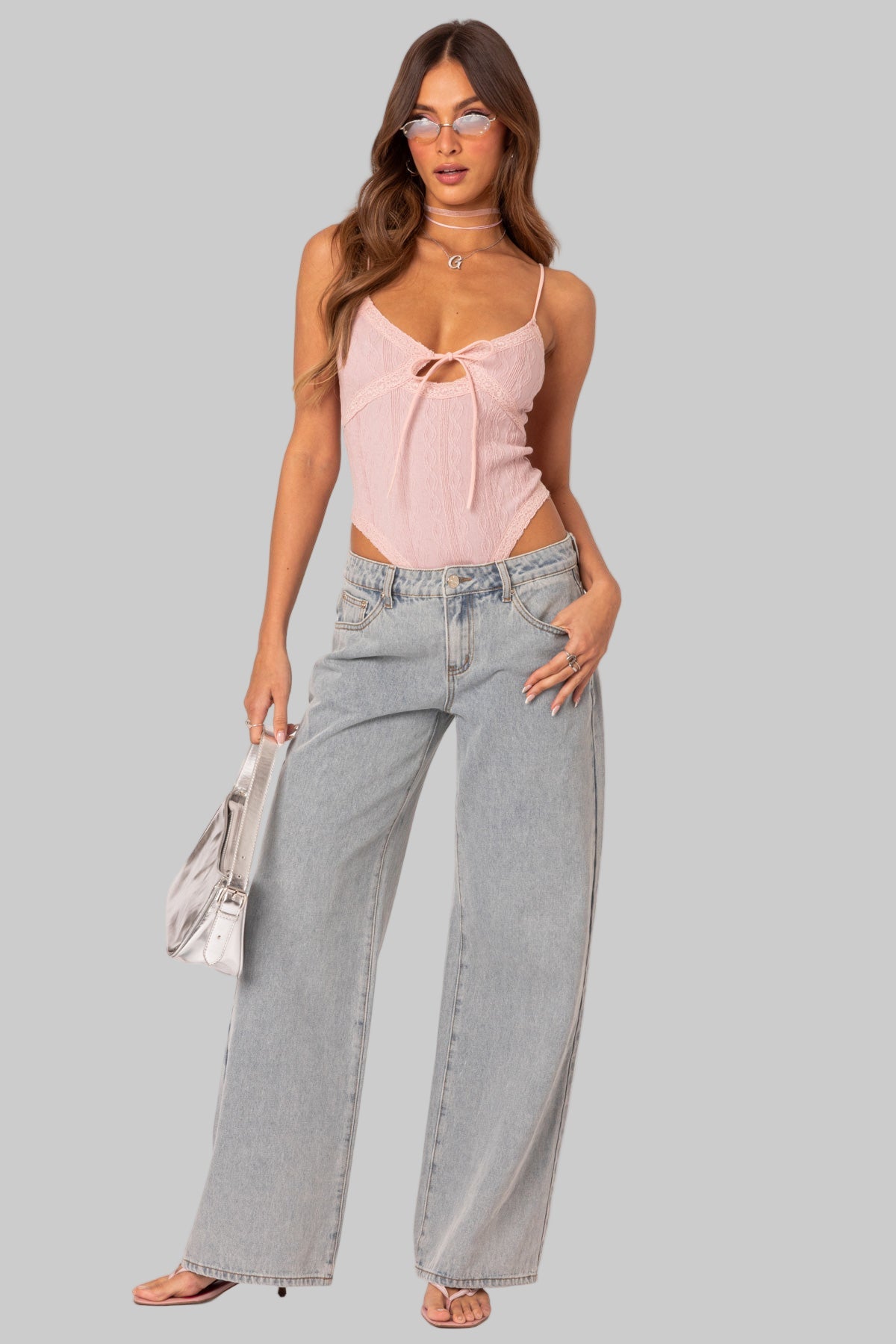 Playful yet elegant, the Verity High-Waisted Jeans bring a refreshing twist to your casual-chic wardrobe. Designed with delicate bow accents and subtle embroidery, these jeans strike the perfect balance between feminine charm and timeless denim style.