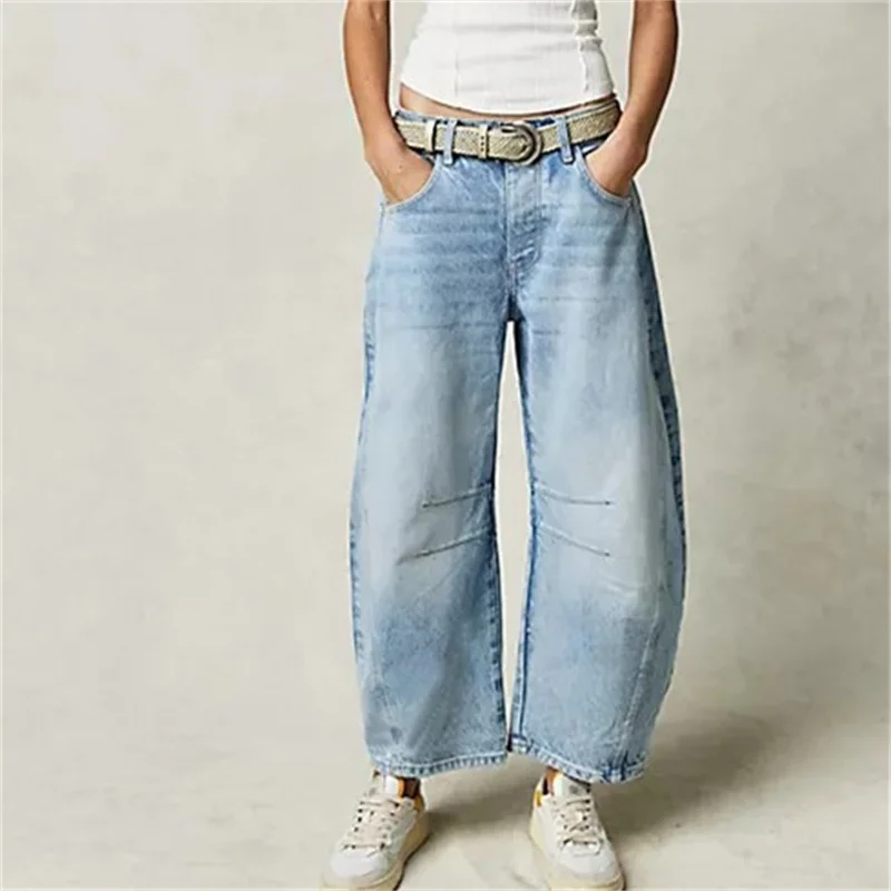Update your denim rotation with these Women’s Vintage American Style Jeans, featuring a unique knee splicing design that adds subtle edge to a classic silhouette. With a mid-waist rise and a straight, loose fit, these jeans strike the perfect balance between retro charm and modern commuter-friendly comfort.