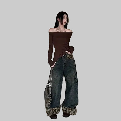 Unleash your wild side with the 2025 Women’s Retro Leopard Print Y2K Wide-Leg Jeans, a bold fusion of Harajuku streetwear and Y2K nostalgia. Designed with a loose, wide-leg cut, these denim trousers deliver comfort and movement while making a fearless style statement.