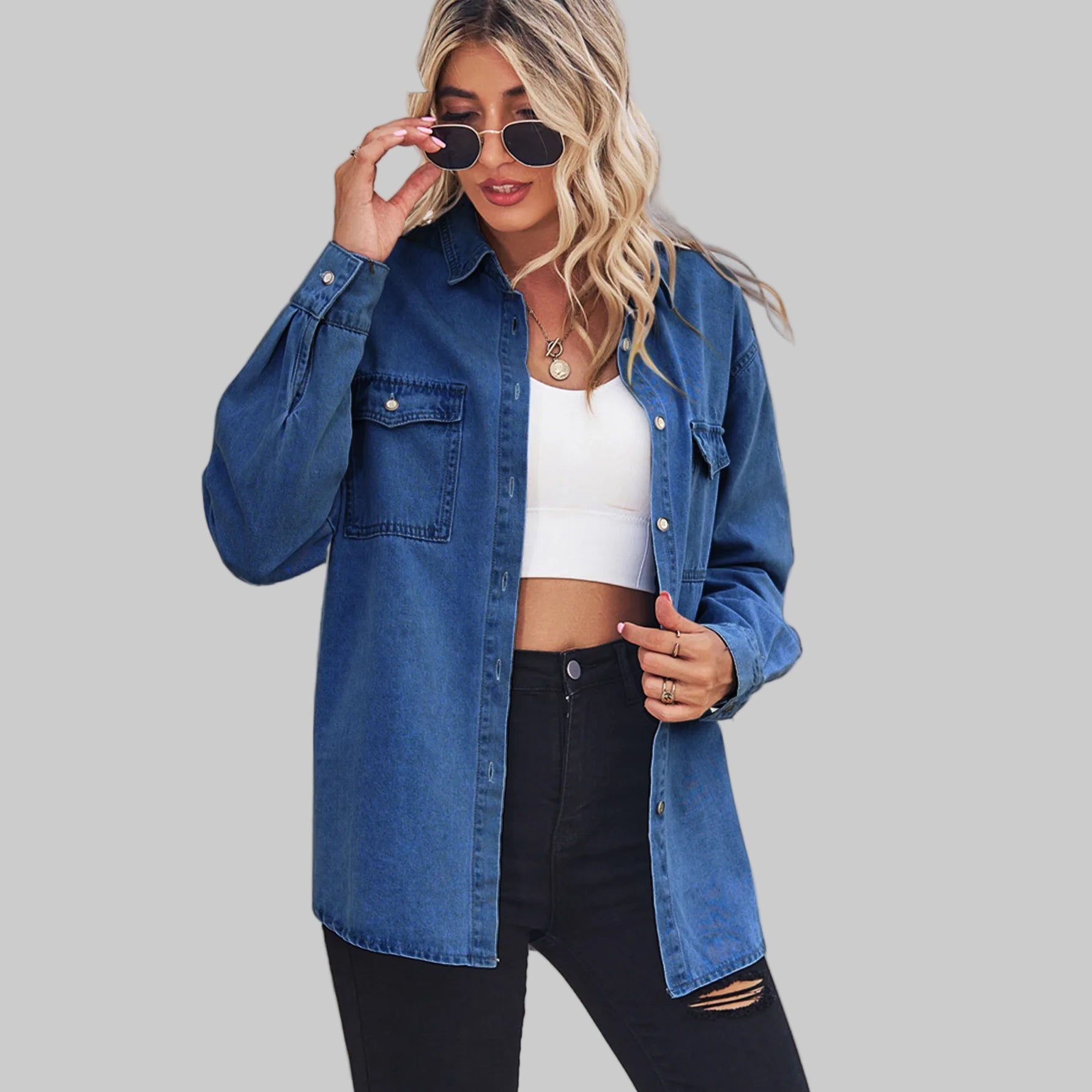 Women’s Casual Loose Denim Shirt – Vintage Oversized Blouse, Fashion Tops for Autumn