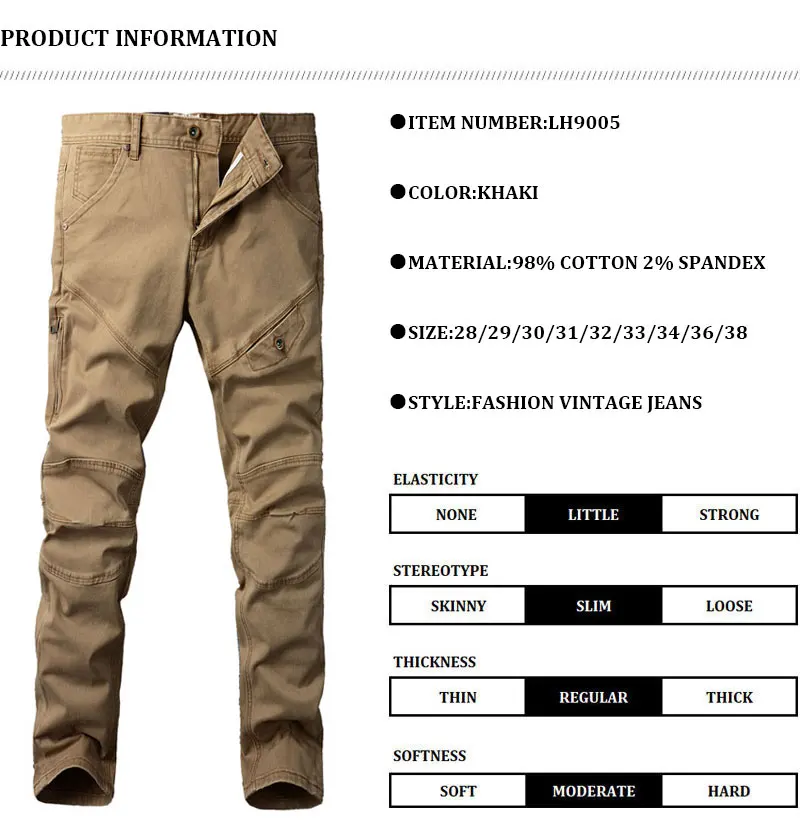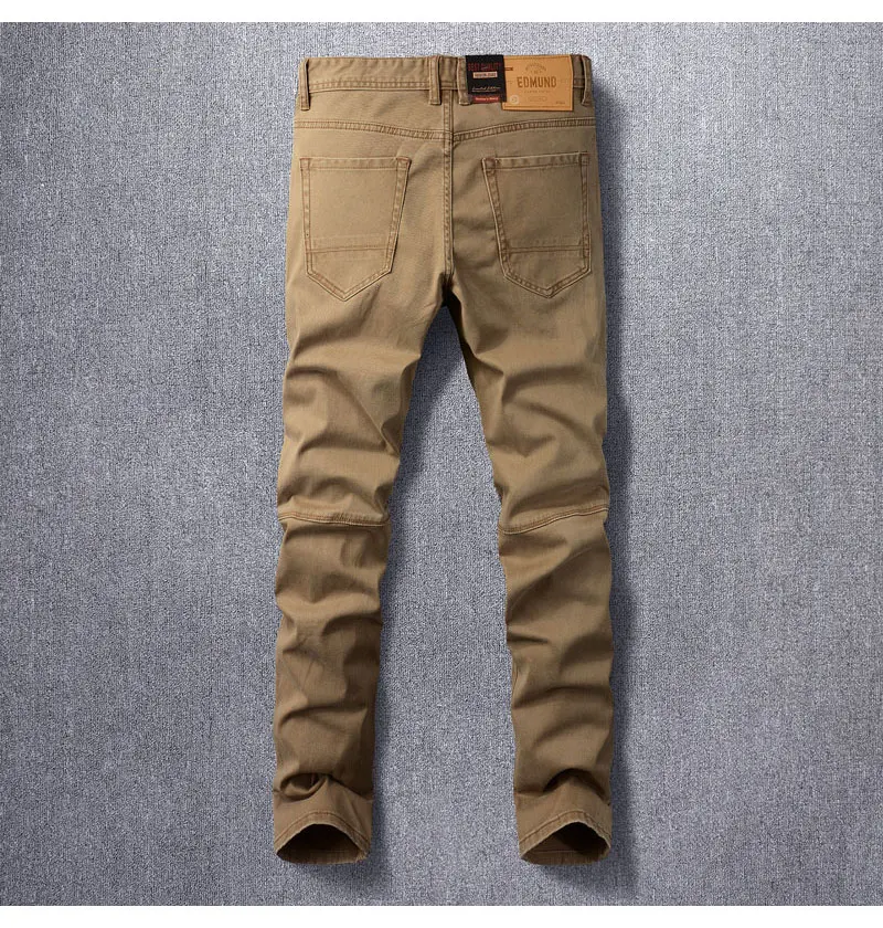 These vintage slim-fit khaki jeans strike the perfect balance between designer sophistication and street-ready function, making them a must-have for any modern wardrobe.