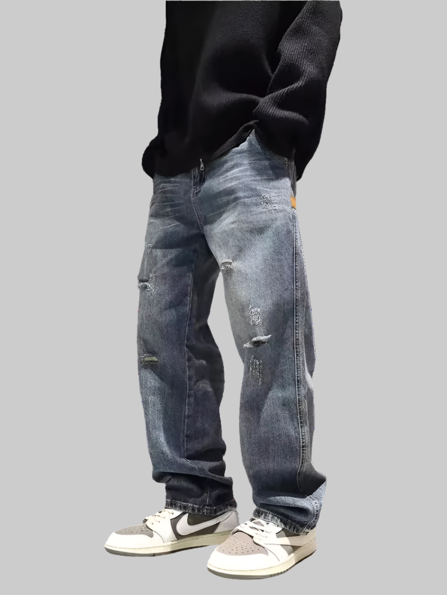 Bring a rugged retro edge to your wardrobe with these Men’s Vintage Blue Ripped Baggy Straight Jeans, designed for those who love authentic hip hop streetwear style. Featuring a loose straight-leg fit and distressed ripped detailing, these jeans capture a raw, urban vibe while keeping comfort at the forefront.