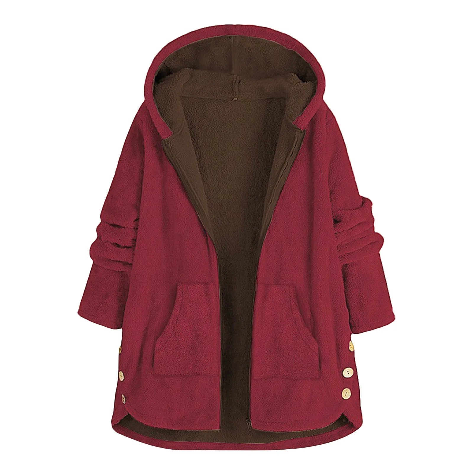 Stay warm, stylish, and comfortable all season long with this plus-size hooded double fleece coat—designed to bring both fashion and function to your everyday wardrobe.
