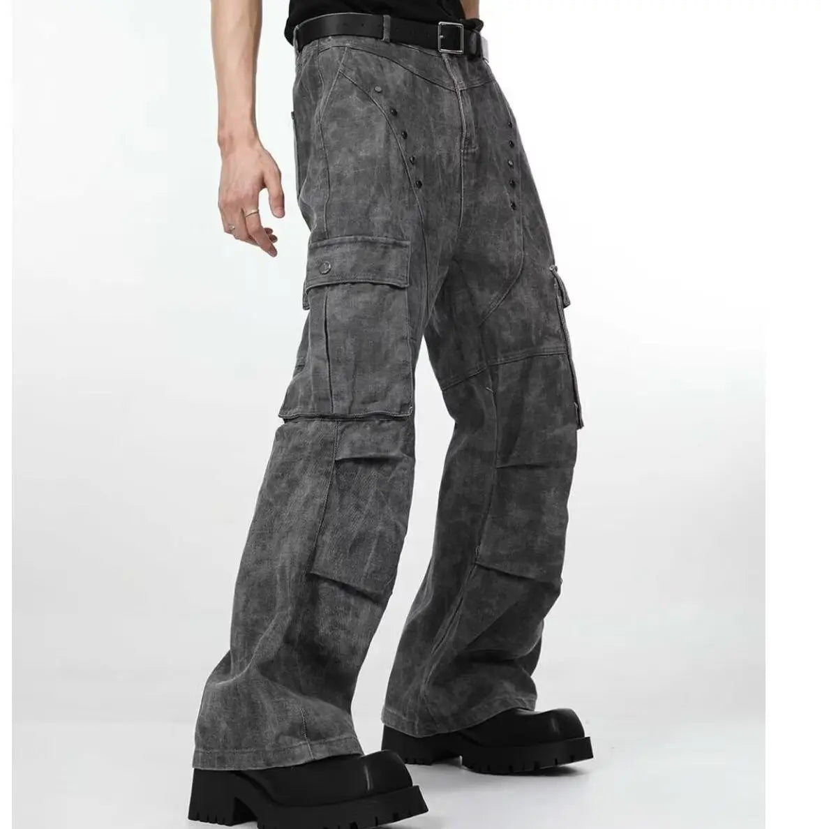 Bring a rugged edge to your wardrobe with these vintage-inspired wide-leg jeans, blending classic American workwear heritage 💪 with modern street style. Designed with a high waist for a flattering fit, these jeans feature deconstructed detailing ✂️ that adds a bold, fashion-forward twist.