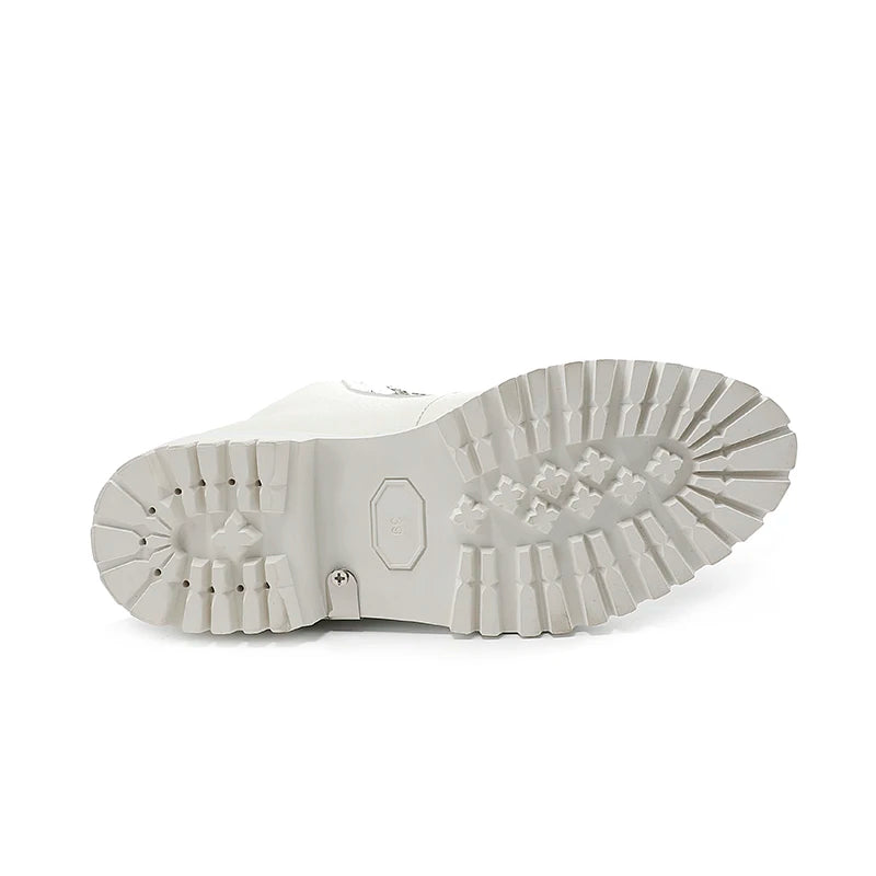 The thick platform sole provides extra height, traction, and support. The lace-up closure ensures a snug fit while adding a rugged, motorcycle and military-inspired edge to your style. ⚡